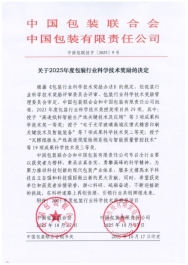 近日,中国包装联合会和中国包装有限责任公司在江苏省江阴市举行了中国包装行业科技奖颁奖仪式,对2025年度中国包装行业科技奖获奖项目(其中一等奖3项、二等奖7项、三等奖19项)进行了公布和表彰。