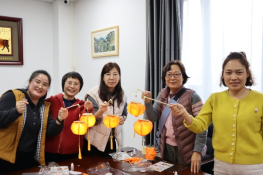女教工们化身“非遗传承人”亲身体验花灯制作,从搭建骨架、裁剪材料到粘贴装饰、系挂流苏,每一步都细致入微、精益求精。大家相互协作、交流心得,一盏盏带着春意与祝福的精美手工柿子灯次第成型,橙黄的灯影挥洒着柿柿如意的祝福映照着大家的笑脸,尽显巾帼巧思。