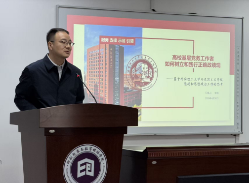 张锐书记结合自身多年基层党务工作经验,围绕“理论学习、实践探索、工作感悟”三个方面展开深入讲解。他从习近平总书记关于政绩观的重要论述出发,分析了当前部分党员干部中存在的政绩观偏差问题,指出党内集中教育是推进自我革命、解决突出问题的重要途径。他强调,基层党务工作者要以问题为导向,善于利用集中教育的契机,破解工作难题,推动党建与业务深度融合。张书记还分享了马克思主义学院在党建引领、师德师风建设、人才培养等方面的创新做法,提出了“学、会、群、规、大、底、特、顺”八字工作法,为基层党务干部提供了可操作、可推广的实践路径。