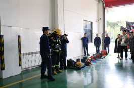 活动中,消防站指战员结合火灾案例,讲解了火灾成因、初期扑救及火场逃生技巧,强调日常用火用电安全要点。随后,学生们依次参观消防车库、器材装备库等区域,指战员详细介绍了各类消防车辆、高压水枪、破拆工具等装备的功能与操作原理,学生们还亲手佩戴消防头盔、防护服,直观感受消防装备的厚重。此外,学生们还参观了宿舍和荣誉墙,整齐的内务环境与沉甸甸的荣誉锦旗,让大家深受触动,进一步增强了对消防指战员的崇敬之情。