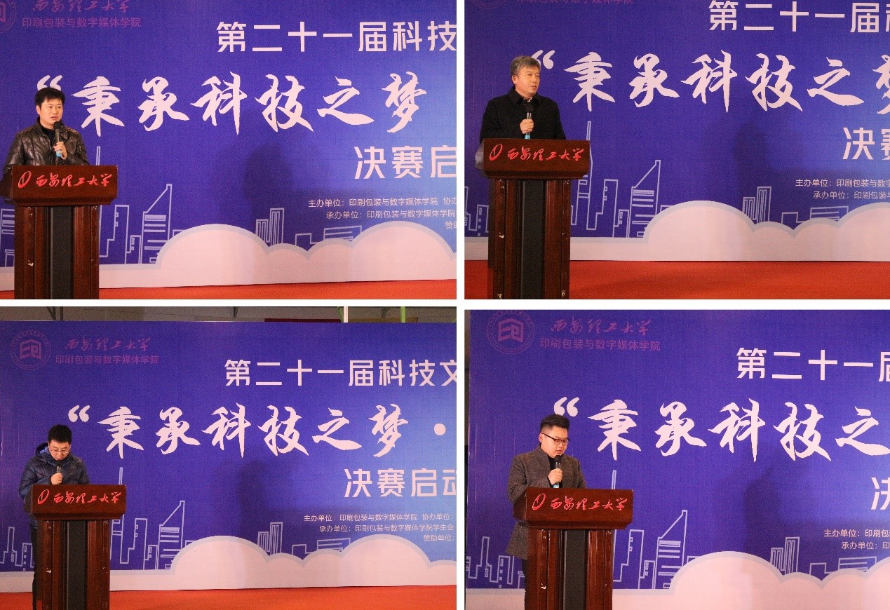 郭轶老师做了关于第二十一届科技文化节工作报告,报告中提到本次科技节作品的“广泛”、“新颖”、“量多”的特点。秉信环保包装有限公司生产总监黄伟宏简单介绍了秉信环保包装有限公司的大体情况,为本次科技节送上了最诚挚的祝福。学生代表史文亮随后上台发言,最后由院长方长青致辞、宣布总决赛正式启动。
