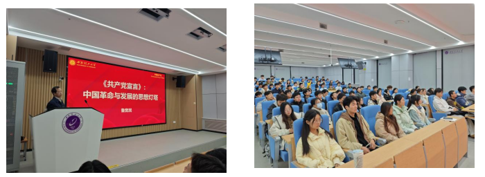 鲁宽民教授以《共产党宣言》的诞生背景引入,回顾其作为科学社会主义首部纲领性文献的重要意义,并结合中国近代历史进程,阐述该著作自传入中国后对革命实践与发展道路的深刻影响。讲座系统梳理了从康有为早期引入到李大钊、陈独秀推动马克思主义中国化,再到其在革命与建设中的指导作用,生动展现了经典著作跨越时代的思想力量。